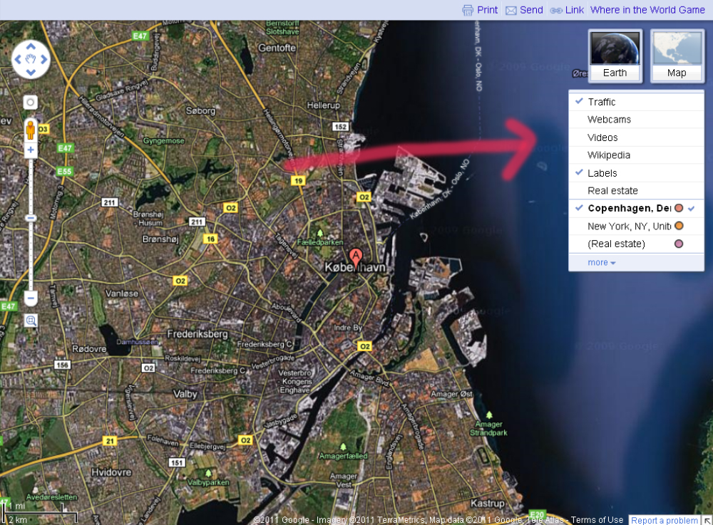 Derfor er det nu blevet nemmere at hoppe fra et almindeligt satellit-perspektiv til Google Earth. Netop Google Earth har tidligere fungeret som selvstændigt program, men er faktisk tilgængeligt på maps.google.com.