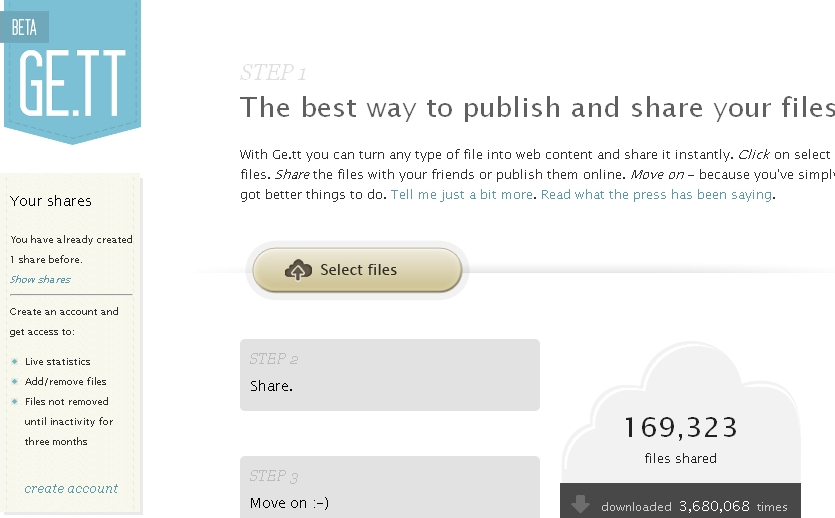 Som en læser formulerer det: "Den fedeste fildelingstjeneste der findes er det danske startup http://ge.tt. End of discussion."