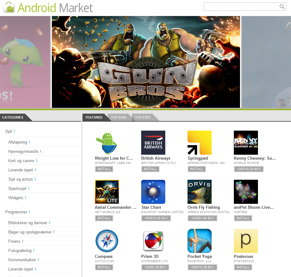 Du kan selv prøve market.android.com her.
