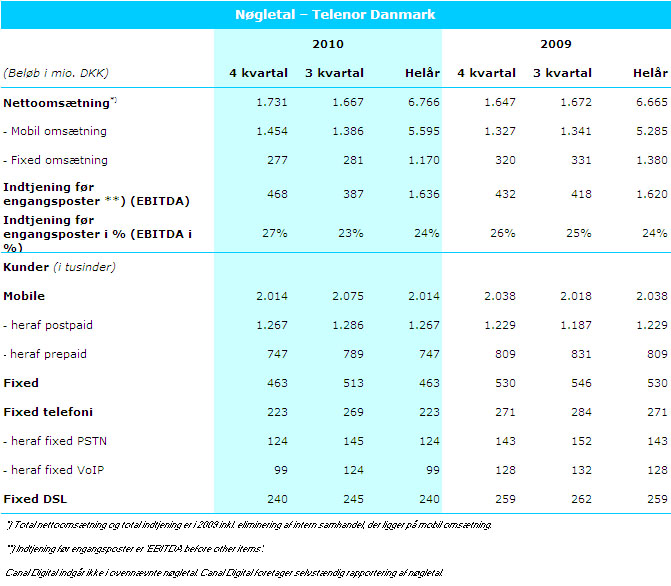Det norsk-ejede teleselskab offentliggør sit årsregnskab for 2010, og her kan selskabet fremvise, at virksomhedens salg går frem på det danske telemarked.