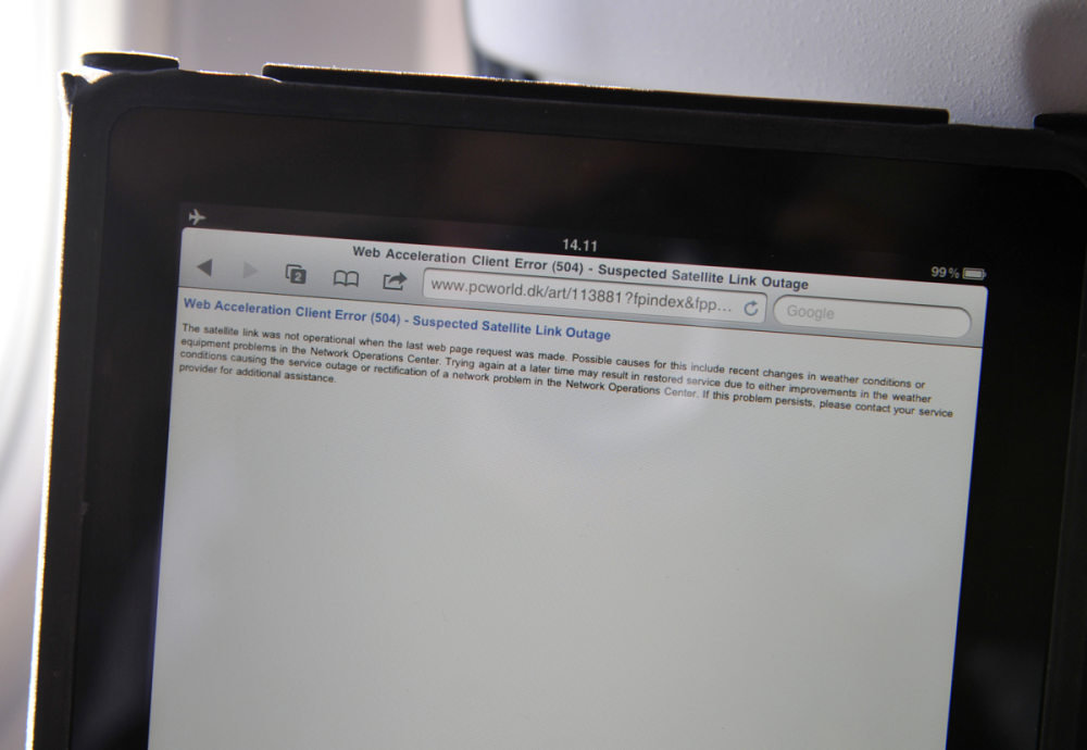 Vi stødte også ind i en fejlmeddelelse undervejs, og iPad'en hoppede helt af det trådløse netværk på flyet. Om det er Apple eller Norwegian, der skal give en kvajebajer, er vi ikke helt klar over.