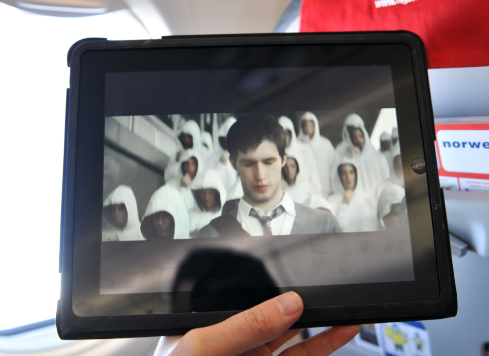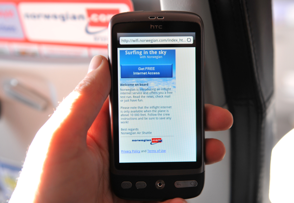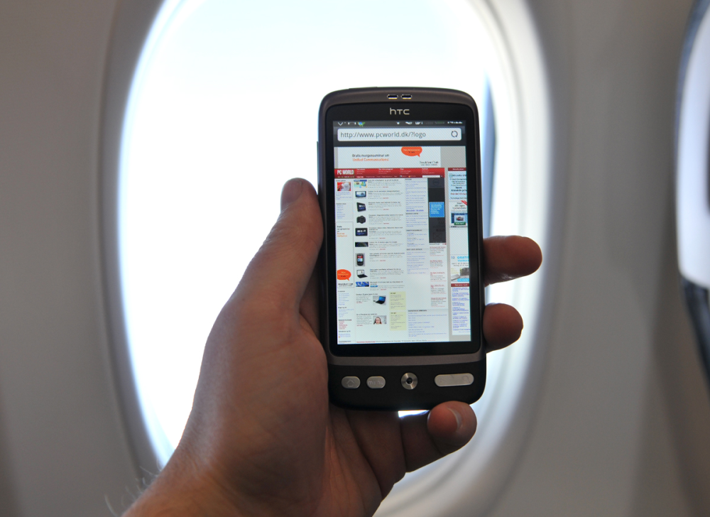 Med i håndbagagen havde vi en iPad og en HTC Desire, der blev koblet til det åbne, trådløse netværk i kabinen.