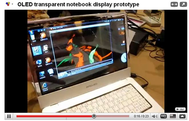 På messen for forbrugerelektronik i Las Vegas viste Samsung i sidste uge prototypen på en bærbar med en 14 tommer gennemsigtig OLED-skærm.
