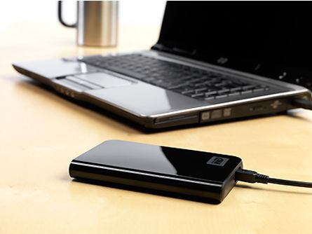 Ultrabærbar harddisk er pakket med faciliteter som automatisk og kontinuerlig backup, passwords-beskyttelse og en oplyst kapacitetsmåler. Der medfølger såvel software som dockingstation.