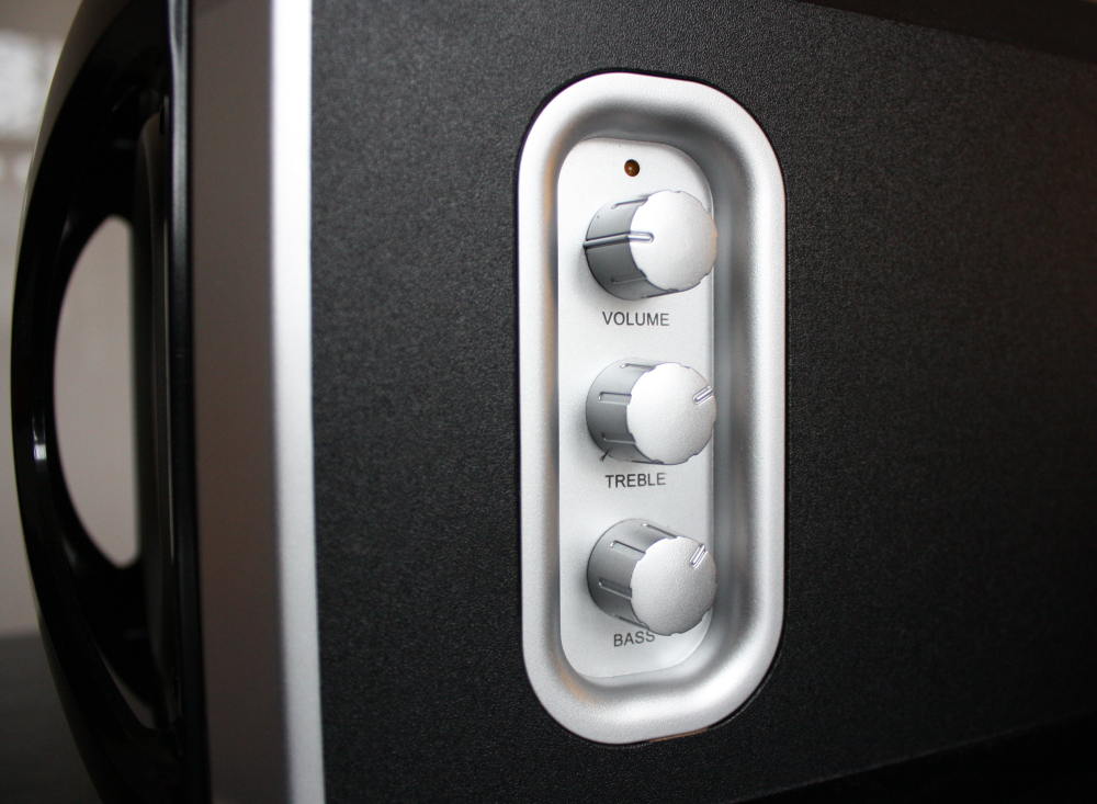 X-plosion 2.1 kan derimod kun styres fra knapperne på siden af subwooferen. Det kan være temmelig irriterende, hvis man eksempelvis har forvist den til en plads under skrivebordet. Heldigvis er subwooferen halvt så stor som ved konkurrenten.