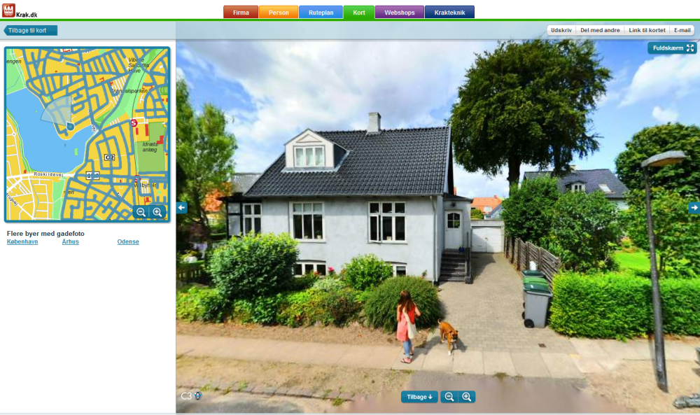 - Vi tager billeder af gader og bygninger, sådan som virkeligheden ser ud. Men hvis nogen føler sig trådt på, kan man nede i højre hjørne indsætte rettelser og kommentarer, og så fjerner eller slører vi øjeblikkelig billedet, Claus Thor Nielsen, produkt- og markedschef hos Eniro Danmark, der i juni 2007 købte Krak for 400 millioner kroner.