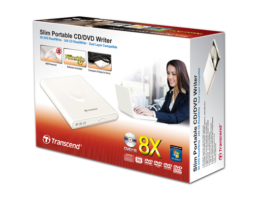 Transcend Slim Portable CD/DVD Writer kører på strøm via computerens USB-porte, og du slipper derfor for at jonglere med en ekstern strømforsyning.