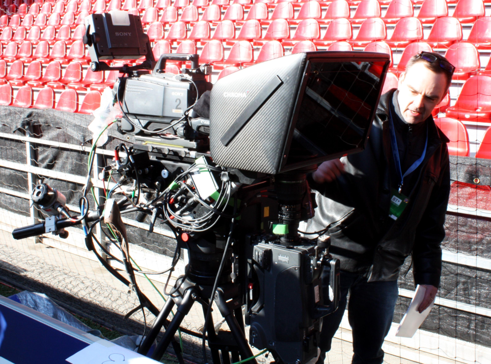 Et andet kamera var placeret på sidelinjen, sådan cirka midt på tribunen, hvor det på grund af størrelsen havde kapret et par pladser, som sædvanligvis er reserveret pressen.