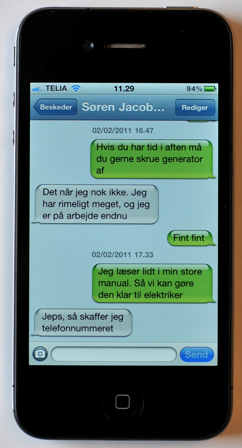 Android Da forskellige mobilproducenter har mulighed for at tilpasse Android, inden nye telefoner skydes ud, kan sms-beskeder grafisk se forskellige ud fra model til model. Her er det en HTC Desire, der ligesom iPhone gør brug af samtale-tråde.