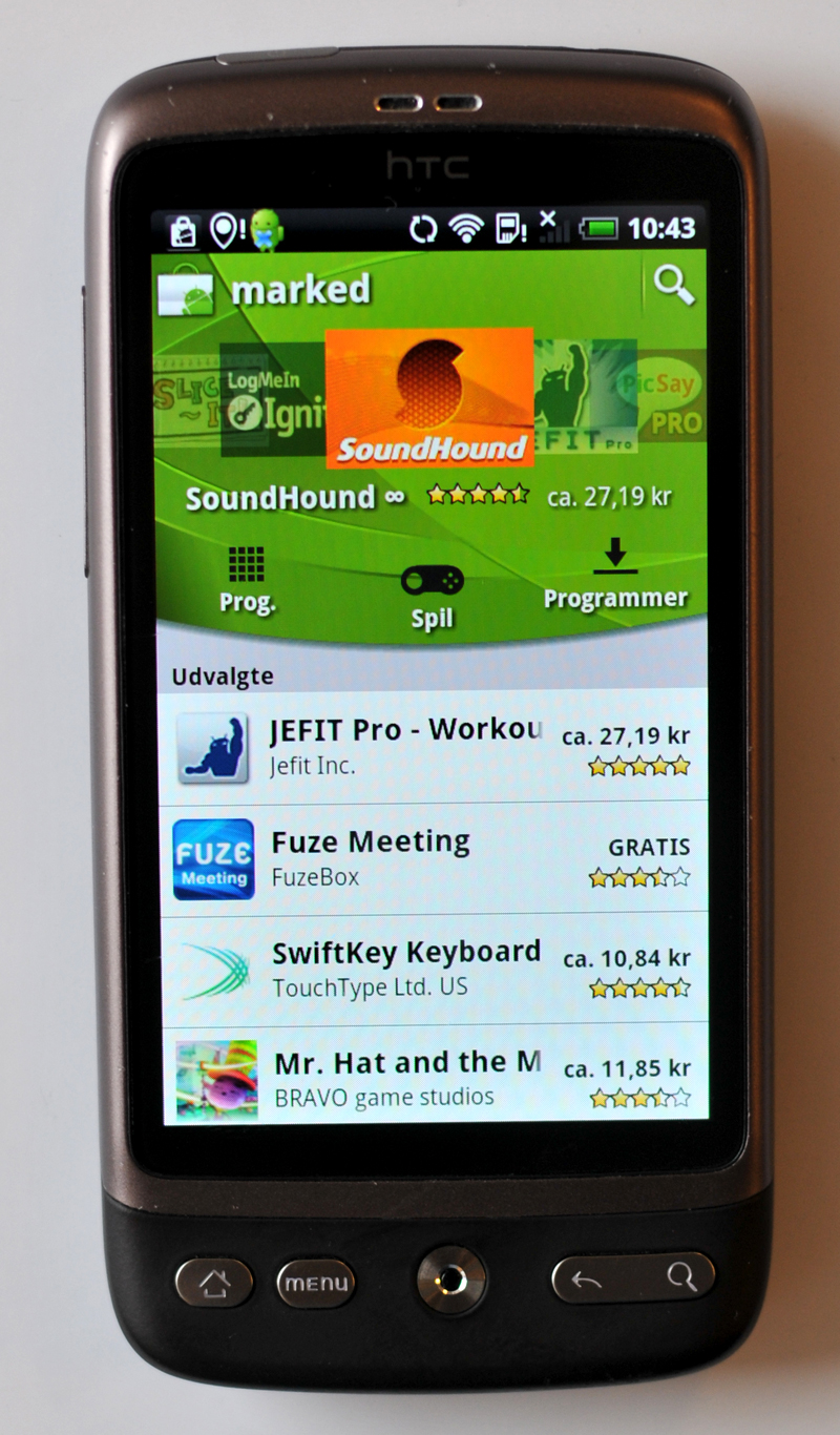 Android Marked Googles bud på en online butik er Android Marked, hvor der kan downloades apps. Der er direkte adgang fra mobilen, og som en lille bonus kan du fjerninstallere programmer fra din pc, selv om mobilen ligger gemt i lommen. Android Marked er den største konkurrent til Apps Store, og Googles onlinebutik har 200.000 tilgængelige apps.