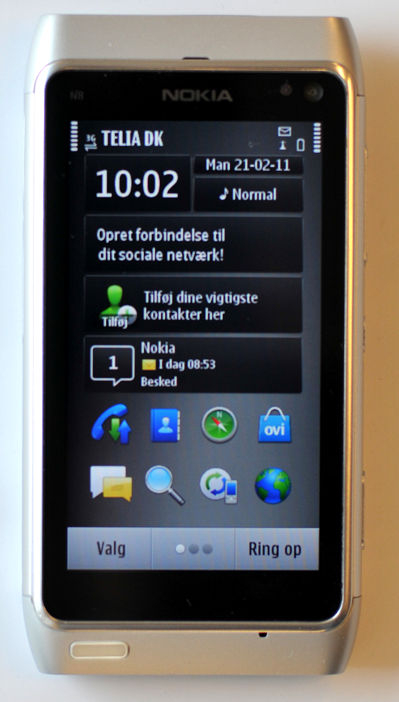 Nokia N8 Symbian 3.0 Symbian byder lige som Android på muligheden for at få præsenteret dynamisk indhold på hjemmeskærmen. Det er også muligt at flytte rundt på elementerne.