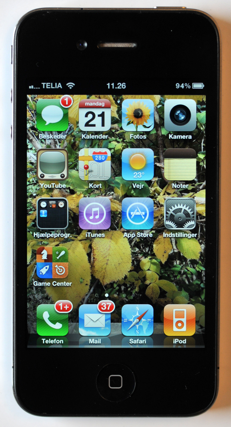 iPhone - iOS Der er ikke sket meget med hjemmeskærmen på iPhone gennem de seneste generationer. De vigtige apps er placeret på forsiden og dermed lettilgængelige. Det er ikke muligt at have dynamisk indhold på hjemmeskærmen, der eksempelvis trækker indhold fra Facebook.