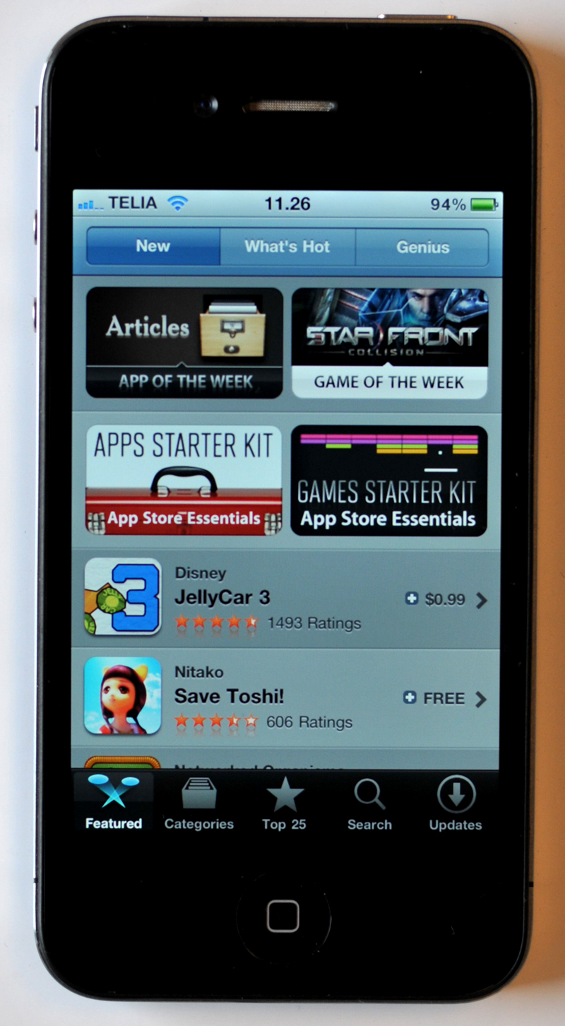 App Store Apple var med iPhone med til at kickstarte ideen om apps på mobilen. Hos æbledrengene skal du lægge vejen forbi Apps Store, hvor det er muligt at downloade små programmer til næsten alle tænkelige formål. Der er over 350.000 apps i Apps Store, og der er noget til ethvert formål. Derfor er det ikke så mærkeligt, at udtrykket Theres an app for that er blevet så populært, at Apple har sat sig på rettighederne til at bruge sætningen i kommercielle sammenhænge.