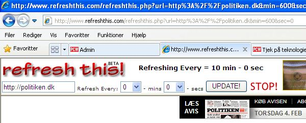 Siden virker på den måde, at du indtaster den webadresse, du vil have opdateret automatisk. Dernæst vælger du, hvor ofte siden skal opdateres, og endelig skal der bare trykkes på start.