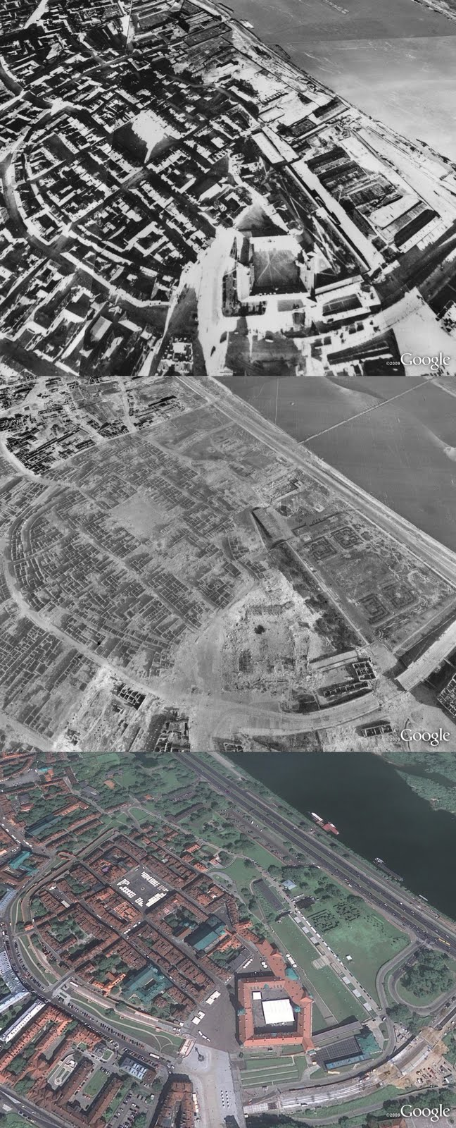 Google har nemlig tilføjet luftbilleder fra 1935, 1943 og 1945 til kortene af 35 europæiske byer.