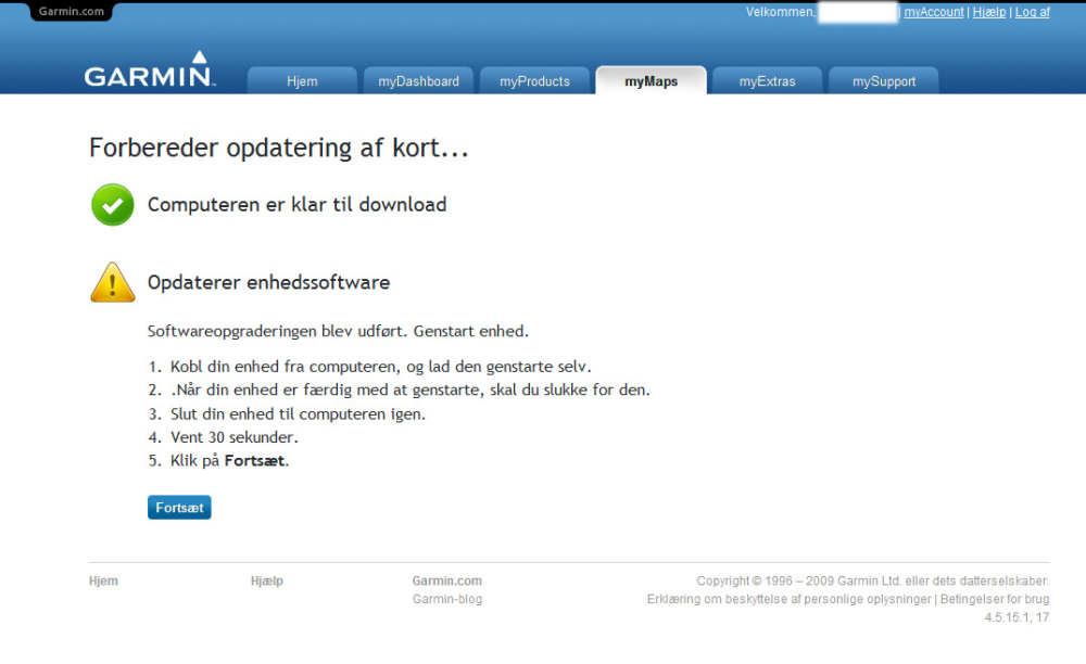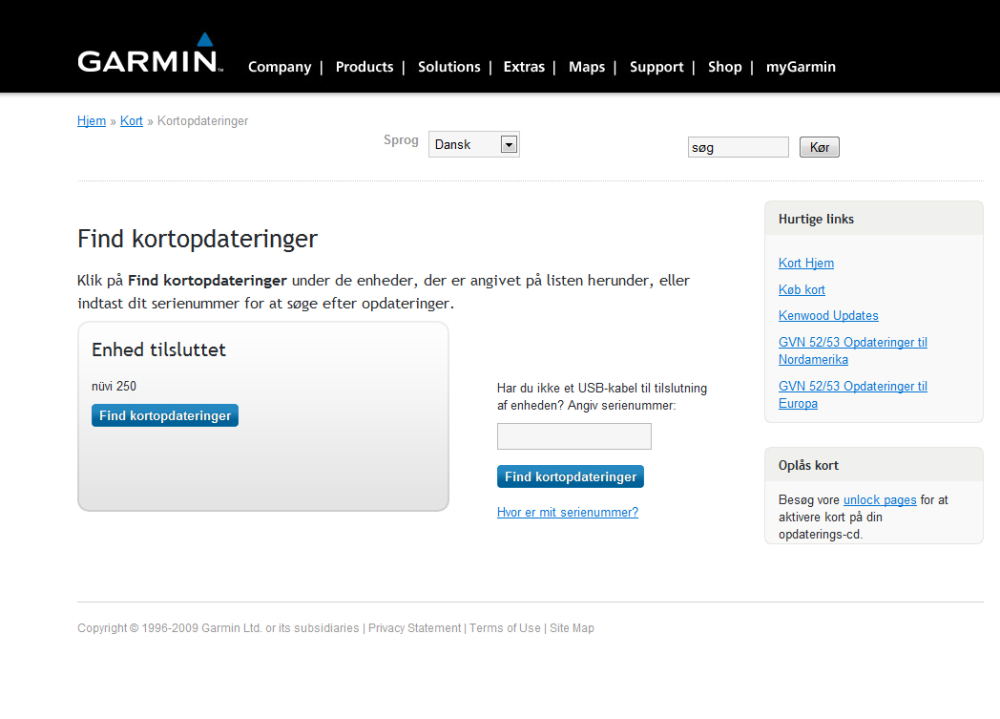 Herefter er det muligt at søge efter opdateringer til enheden via producentens webside. I tilfældet med Garmin var det nødvendigt at oprette en brugerkonto, før det var muligt at opdatere GPS'en.