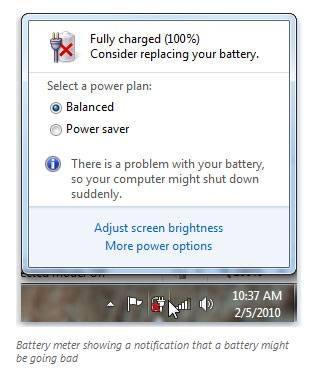 En lang række Windows-brugere, der har opgraderet fra XP eller Vista til Windows 7, har oplevet problemer med batterilevetiden. Efter opgraderingen er meddelelsen "consider replacing your battery" pludselig dukket op på skærmen.