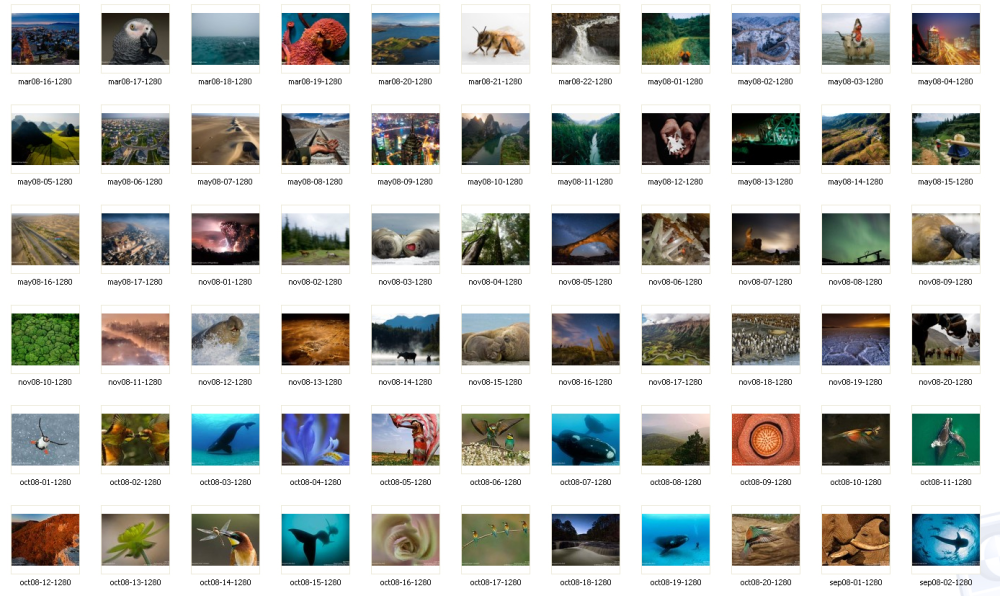 De i alt 1.116 smukke billeder fra National Geographics tager lidt tid at hente ned på computeren, og de fylder 287 megabyte. Download-programmet sørger for at placere billederne i fem forskellige mapper med årstal, så du nemmere kan overskue de mange fotos.
