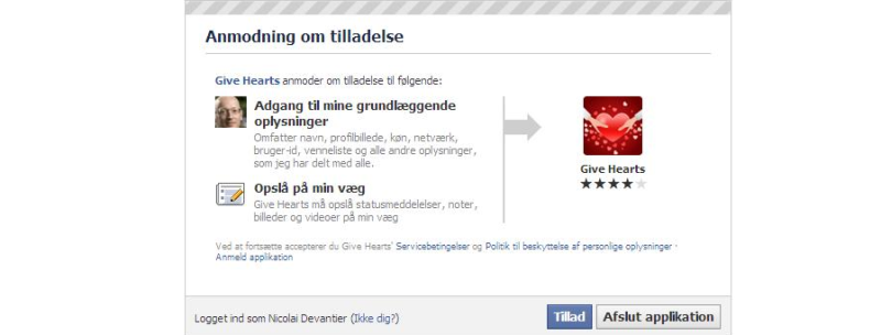 At sige ja til at installere en sjov lille applikation på din Facebook-profil, også selv om du blev advaret om, at applikationen ville få adgang til dine oplysninger.