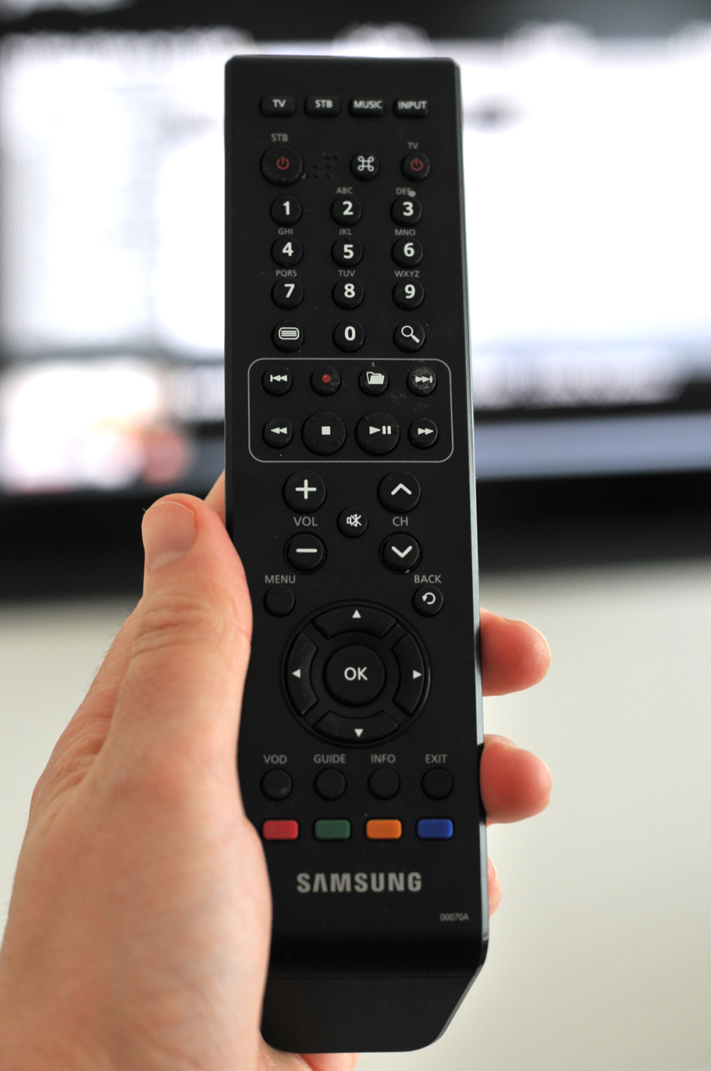 Fjernbetjeningen er sort og ret elegant.