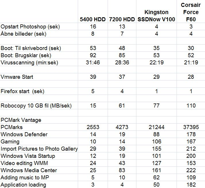 Et andet aspekt af testen, der skal tages i betragtning, er, at almindelige computere til sammenligning nok vil have flere opstartsprogrammer, der sløver ydelsen ved daglig brug. Det kan derfor meget vel tænkes, at du selv vil opleve en endnu større forskel på SSD og harddisk, end vi her kan konstatere.