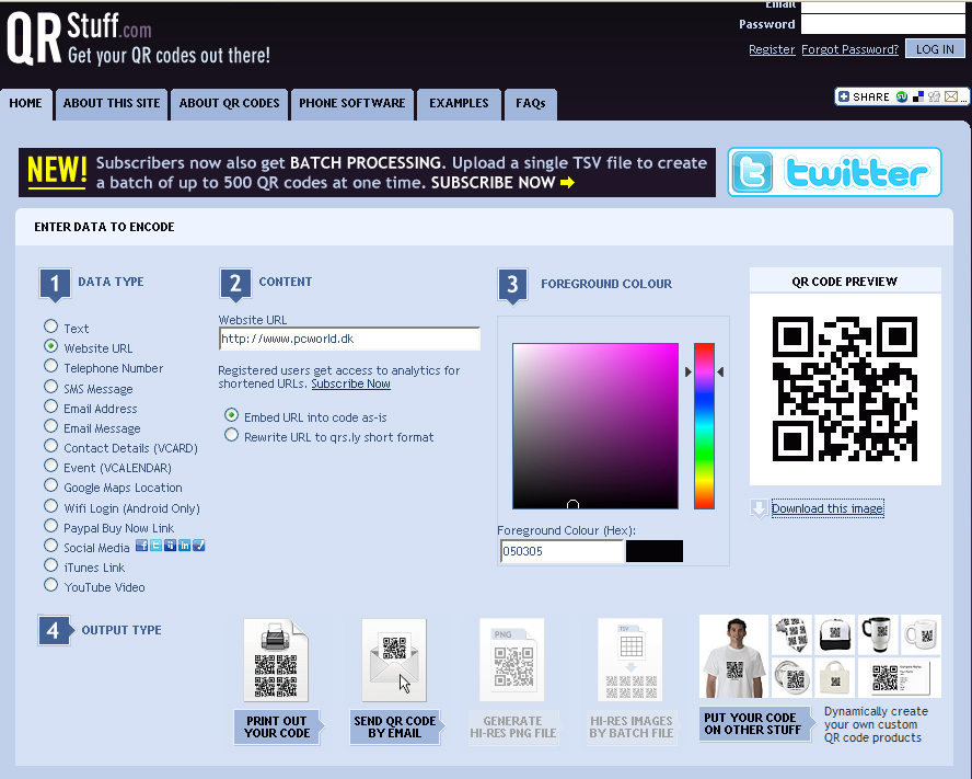Du har mulighed for at give QR-koden en farve, men hvis standardfarven sort er fin, skal du blot vælge "Download this image".
