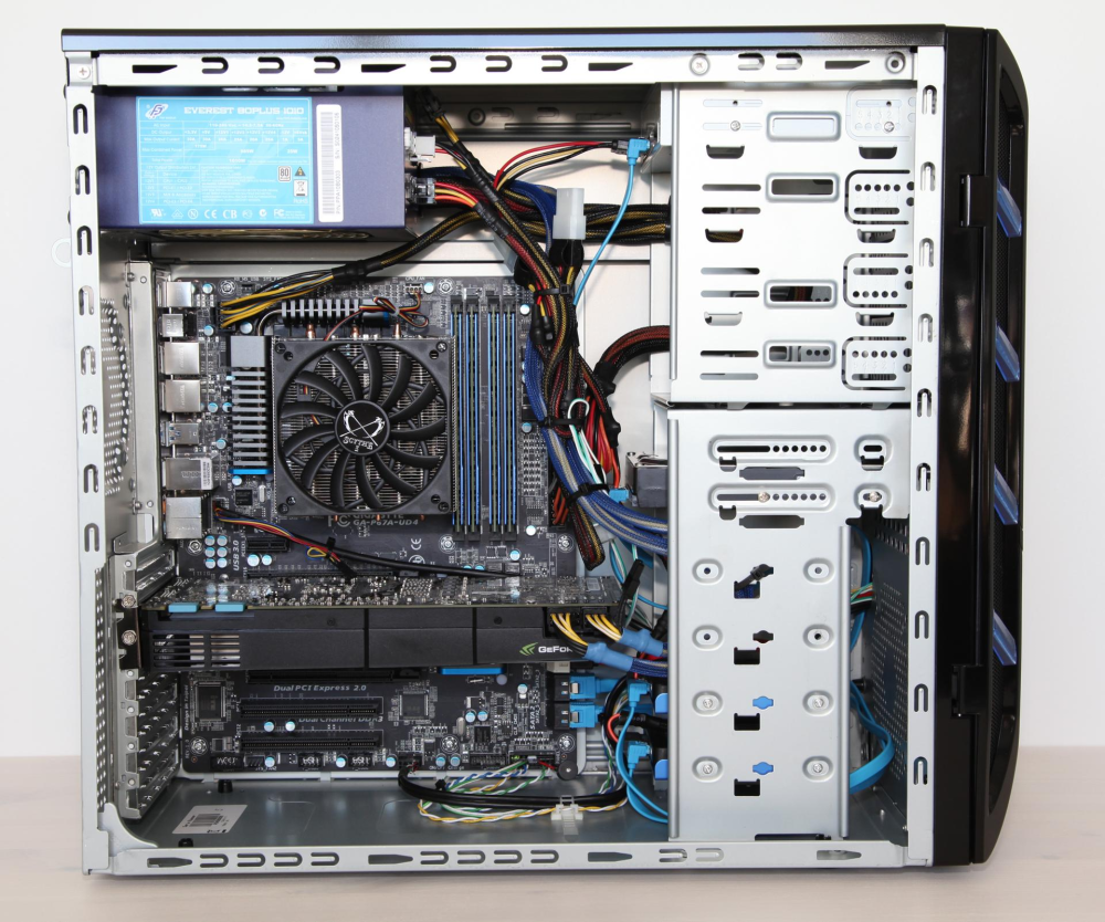 Mærkevarekomponenter præger ligeledes det resterende af maskinen, der serveres i et sort, blankpoleret kabinet i midi tower-format.