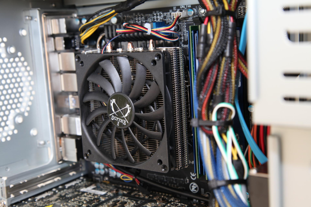 Core i5-2300-processoren, der er en såkaldt quadcore-model på 2,8 gigahertz, er ikke parret med Intels standardkøler, men holdes kølig af Scythes entusiast-køler, Shuriken Rev.B SCSK-1100.