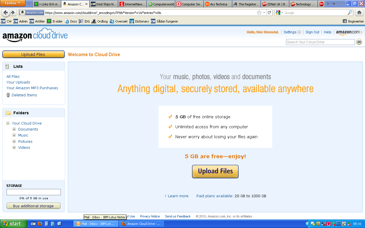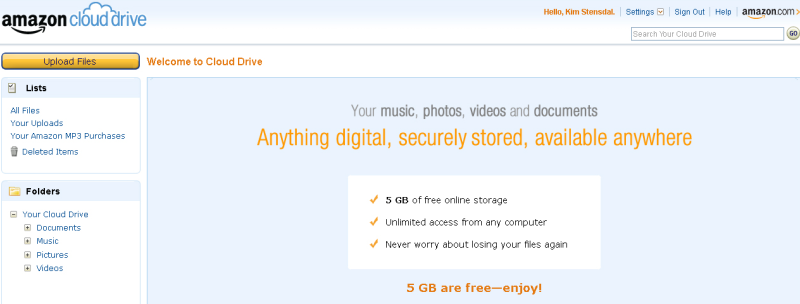 Amazon Cloud Drive (klik på billedet for at se det i stor størrelse).