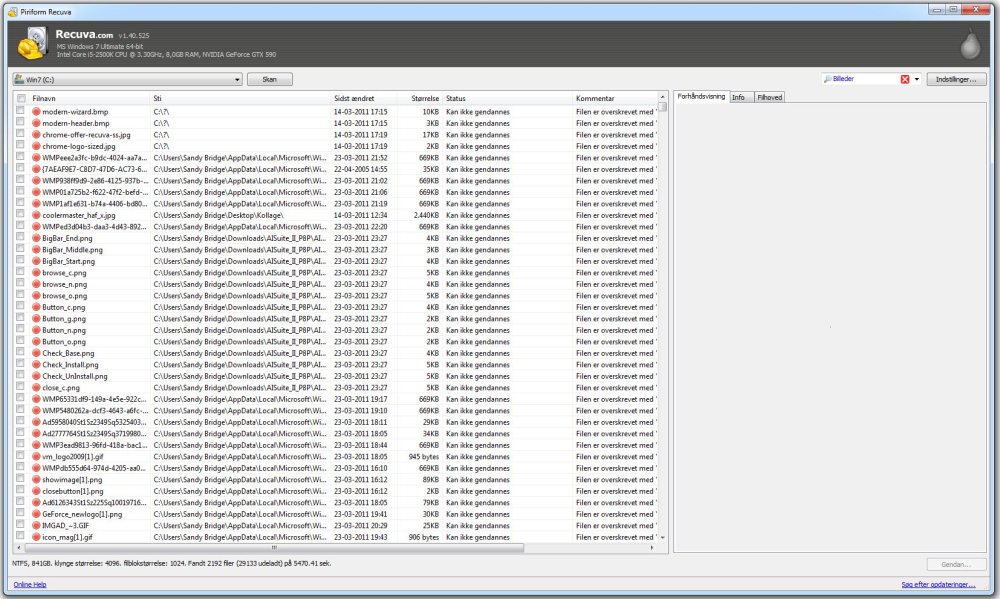 Det lyder måske for godt til at være sandt, men Recuva holder, hvad det lover. Selv om du sletter filer fra din harddisk, er de nemlig først væk for alvor, når de pågældende klynger på harddisken bliver overskrevet med ny data.