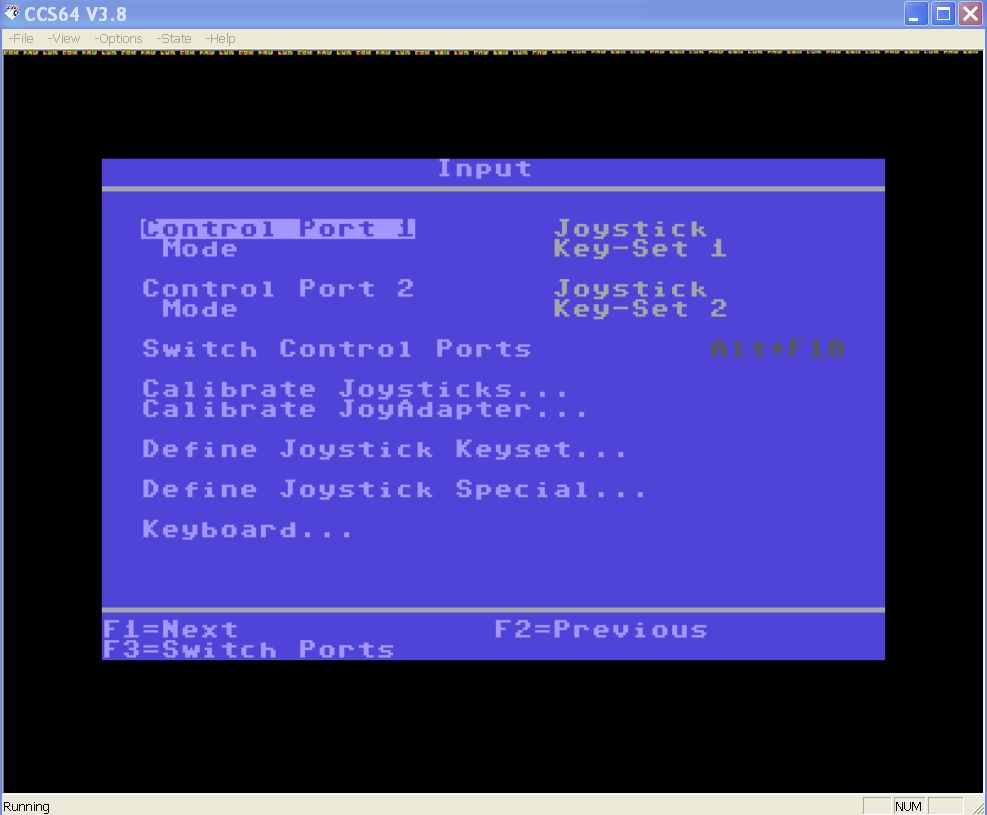 Nu har du sat dine joysticks op. Tryk Esc-tasten for at vende tilbage til C64-skærmen.