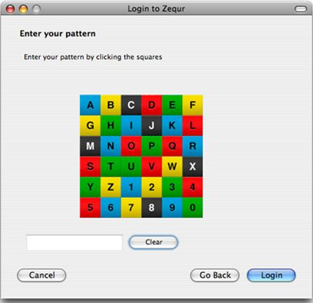 Det virtuelle tastatur, farvekortet med seks gange seks felter, gør det nemt for dig at logge ind på din konto fra både computere og smartphones, og du kan sågar også bruge Zequr fra Apples iPhone.