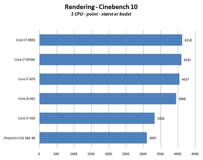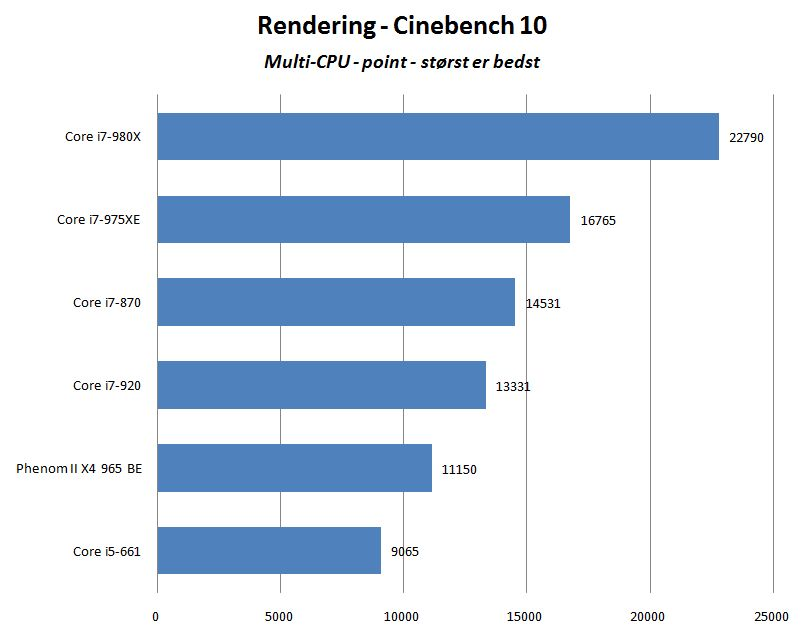 Du får her de vigtige benchmark-tal serveret i letfordøjelig form. Kombinationen af syntetiske og praktisk orienterede testprogrammer er afviklet for processorerne Intel Core i7-980X, Core i7-975XE, Core i7-870, Core i7-920, Core i5-661 og AMD Phenom II X4 965 Black Edition.