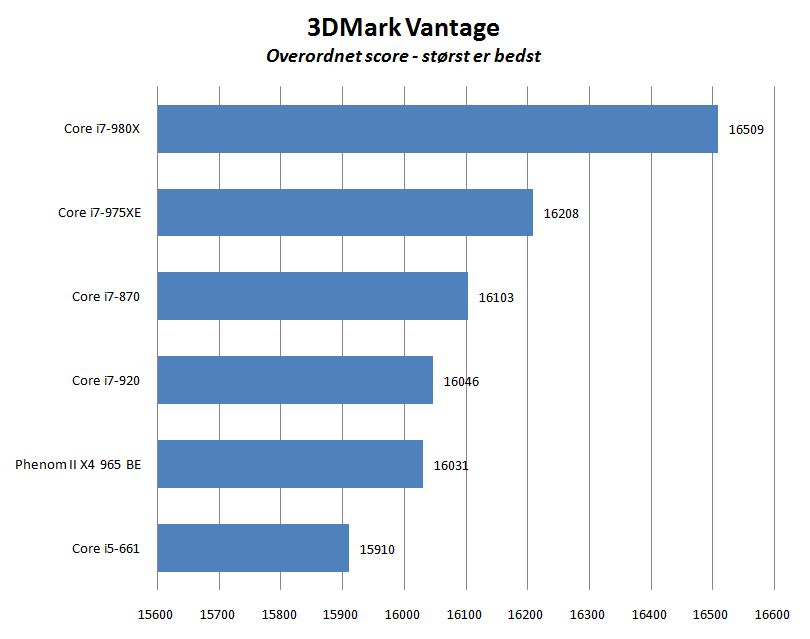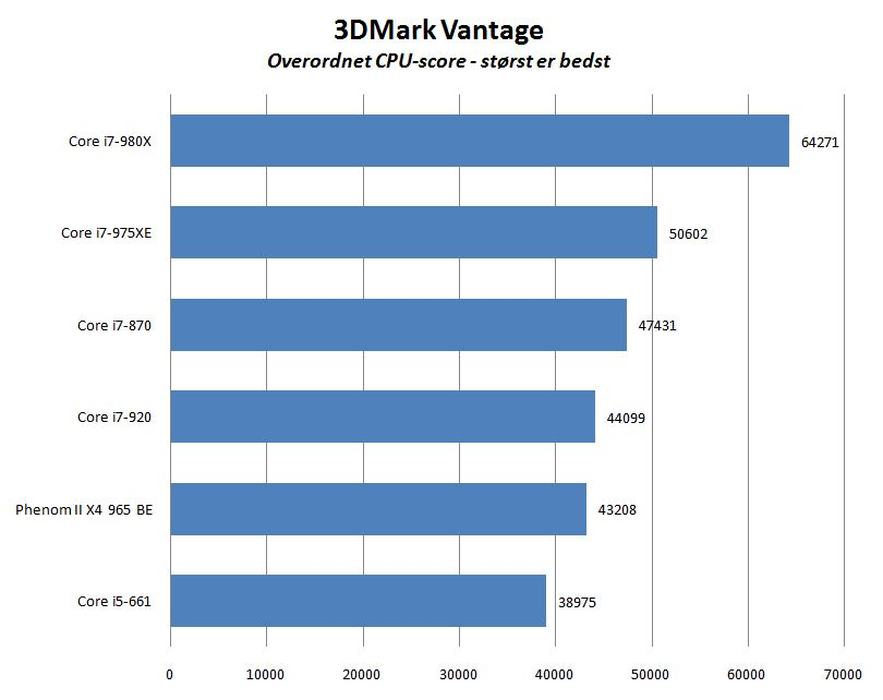 Til standardbrug er i7-980X imidlertid mere på niveau med Intels egen forgænger i Extreme Edition-serien, og til størstedelen af spil kommer det store ydelsesoverskud ikke for alvor til udtryk.