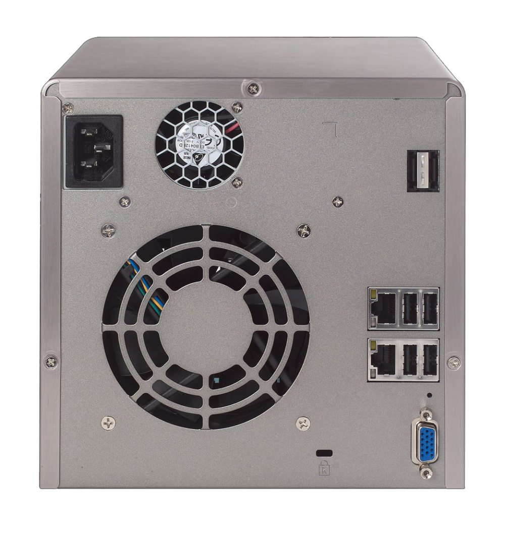 Var det altså ikke for tilstedeværelsen af de i alt fire harddisk-slots på forsiden, hvori du selv skal installere diske efter eget ønske, kunne man godt gå hen og blive narret til at tro, at det var en mini-pc i lidt større format end normalt.