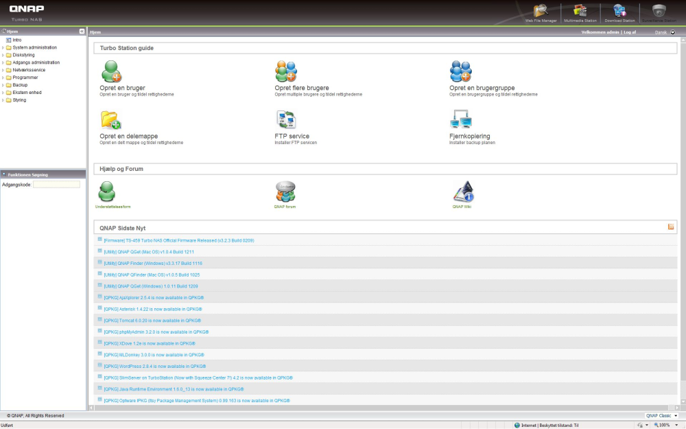 Den kraftige hardware sørgede for, at menusystemet afviklede lynhurtigt, og det var yderst nemt at lokalisere netop de funktioner, vi ledte efter - uanset om vi ville hente filer ned på drevet via BitTorrent-netværket, oprette brugere og definere rettigheder, dele familiebilleder på det lokalt netværk samt via internettet eller tilslutte IP-baserede overvågningskameraer.
