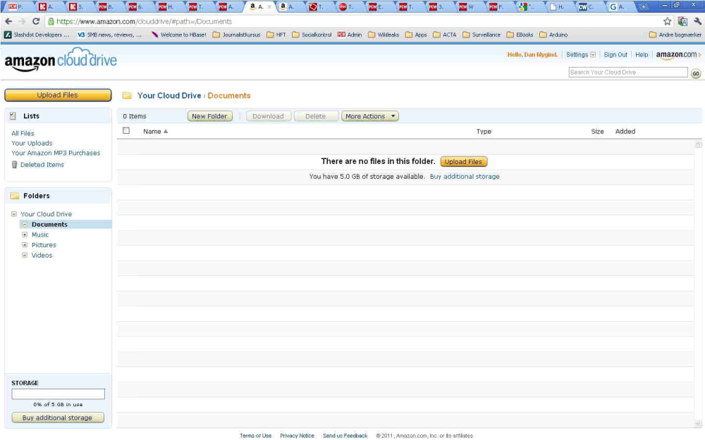 Du skal have en Amazon-konto for at kunne benytte Cloud Drive. Hvis du allerede bruger Amazon, er det meget enkelt at få adgang til den gratis lagerplads.