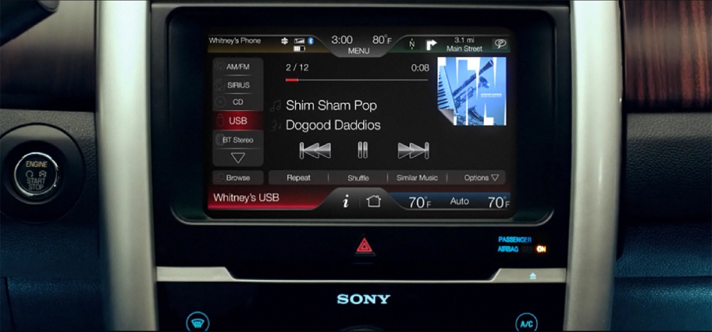 SYNC holder øje med hvad for noget musik, du har liggende på din mobil, din MP3-afspiller eller endda en USB-nøgle og lader dig vælge numre, kunstnere og genre med stemmen. Selve musikafspilningen styres også med stemmekommandoer.