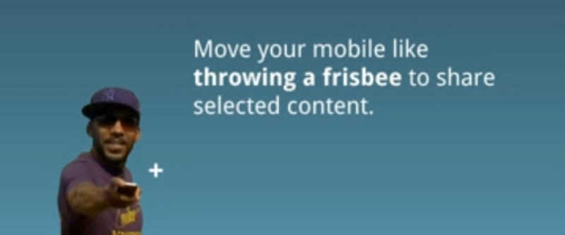 Mere effektiv - og med mindre risiko for skader på mobiltelefon og personer, såfremt mobiltelefonen glider ud af hånden på kasteren - er muligheden for at skubbe en fil fra en mobiltelefon over til en anden, som du også kan se på nedenstående video.