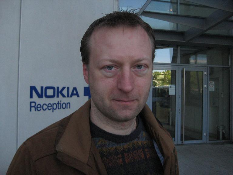 "Jeg er personligt rimelig afklaret og er ikke begyndt at kigge efter et nyt job endnu," fortæller software-projektleder Claus Mortensen til Computerworld foran Nokia Danmarks kontorer.