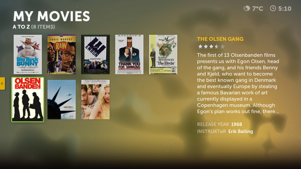 Næste gang du starter XBMC, skanner den selv efter nyt indhold i dine mapper og tilføjer selv film og serier til det indbyggede bibliotek. Ved samme lejlighed henter softwaren også information om udsendelsen og et cover ned fra nettet, så du nemt kan se, hvad filmen handler om.