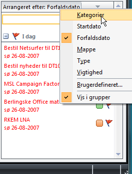 2. Klik på OK-knapperne for at lukke alle dialogbokse, og højreklik igen på Arrangeret efter-knappen. Denne gang vælger du at sortere visningen efter kategorier. Som du kan se, er der to linjer til hver opgave.