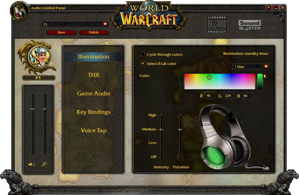 Tre: Ved hjælp af softwaren kan spilleren ændre sin stemme elektronisk - og lyde som for eksempel en kvindelig Blood Elf - og sidst, men ikke mindst, så kan man ændre farven på lysdioderne i begge hørebøffer efter forgodtbefindende.