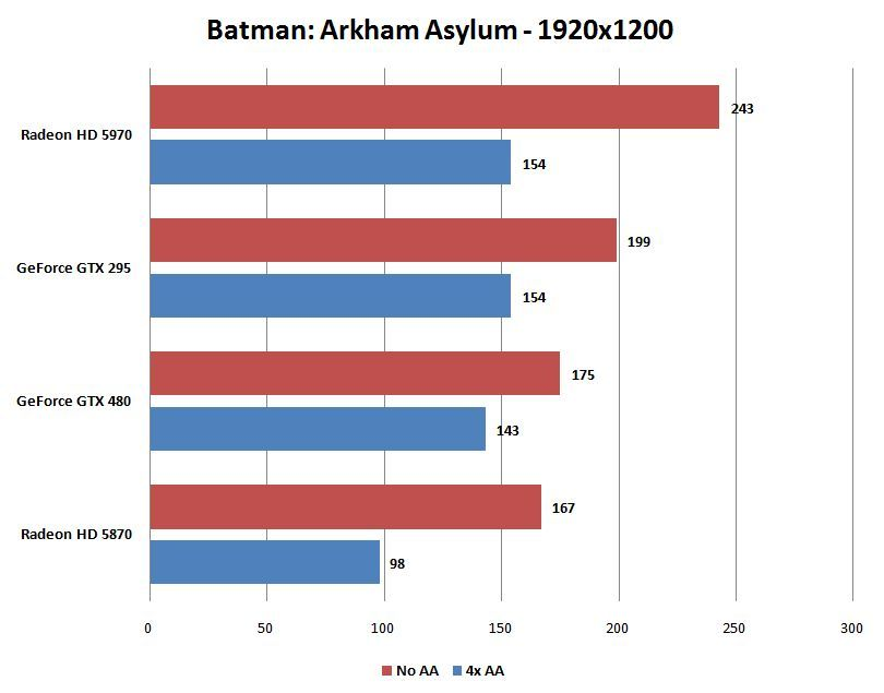 Selvom kortet i sjældne tilfælde overgår ATI Radeon HD 5870 med næsten 30 procent, er situationen i andre udvalgte testspil, at ydelsen ikke varierer nær så meget.