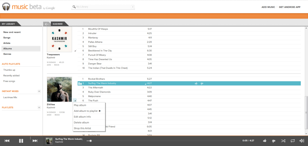 Du kan også markere et nummer og bede Google om alt lave et "Instant Mix," og tjenesten finder så lignende musik i din samling og laver en afspilningsliste. Den har du også adgang til fra din Android-enhed og kan downloade til den lokale lagerplads, hvis du lyster.