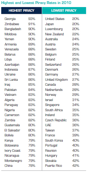 Som det ses i tabellen herunder er pirateriet her i landet dog ganske begrænset i et globalt perspektiv.