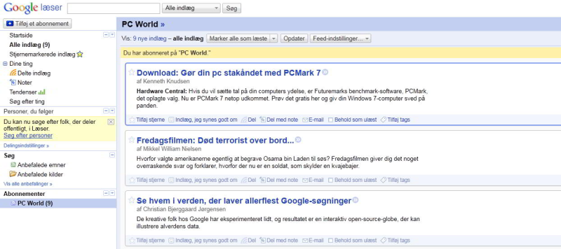 Der findes mange forskellige læsere, men vi har fundet frem til to fornuftige bud. Den ene er web-baseret, så du har adgang til dine feeds, uanset hvor du befinder dig, mens den anden skal installeres og bruges lokalt.