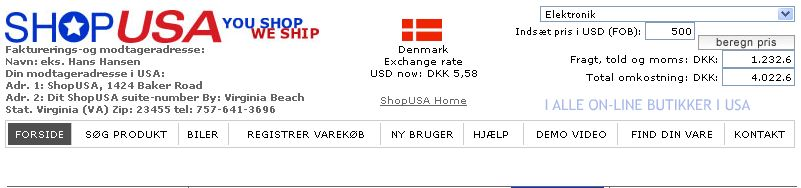 En 'lommeregner' på forsiden af ShopUSA beregner, hvor meget told, moms og fragt beløber sig til af et givent køb, så du får serveret den endelige pris for varen.