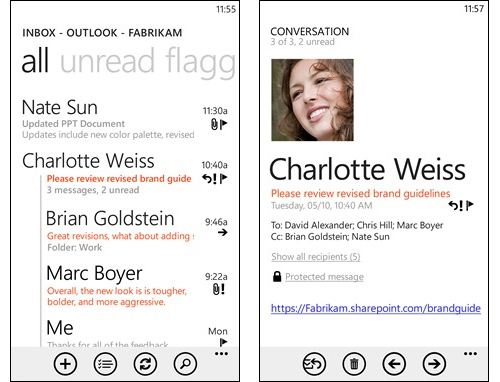 Emails kan nu samles i tråde i Windows Phone 7.5.