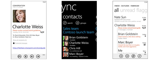 Microsofts nye unified communications-løsning, Lync, er også integreret i Mango. Konkret sker det ved, at man får mulighed for at chatte med Lync-kontakter og at se presence-status via en Lync-app, der kan downloades gratis fra selskabets Windows Marketplace.